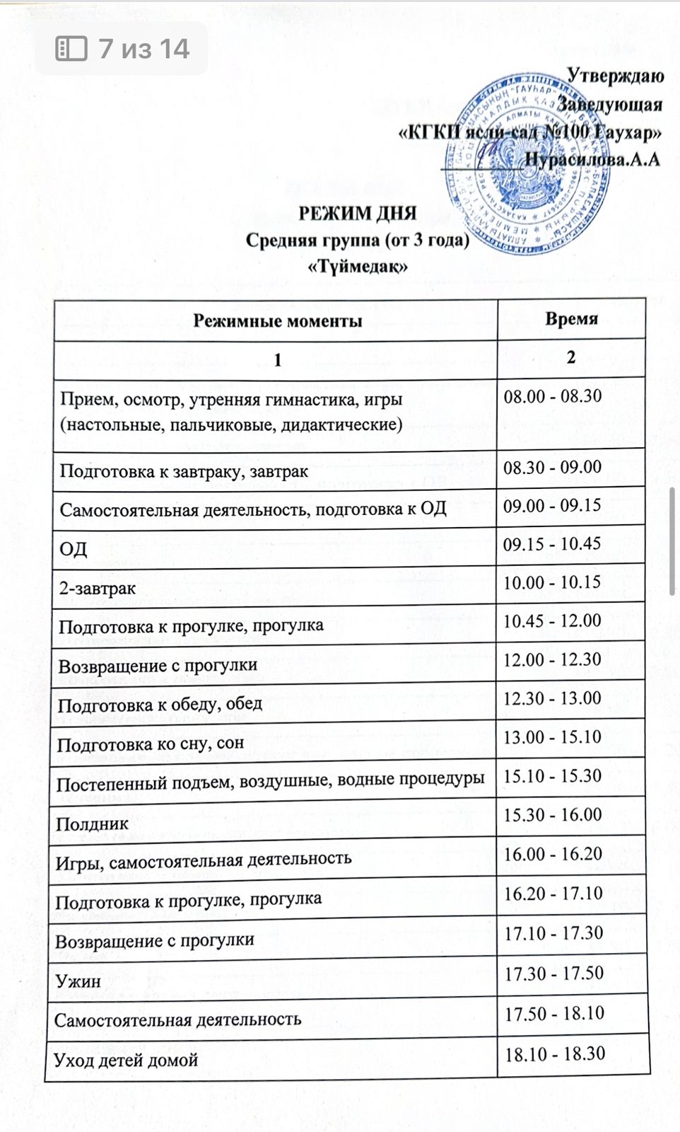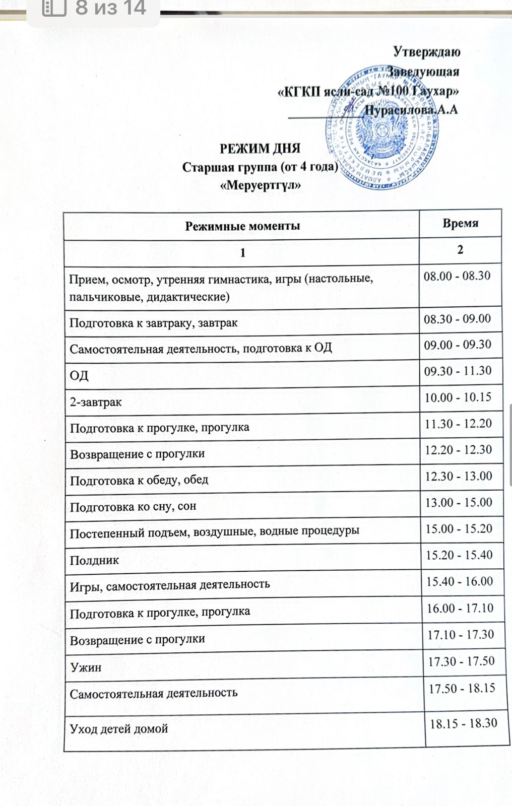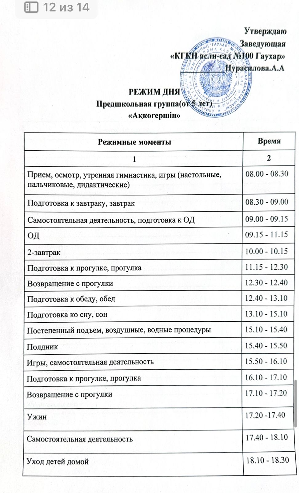 Күн тәртібі. Режим дня.