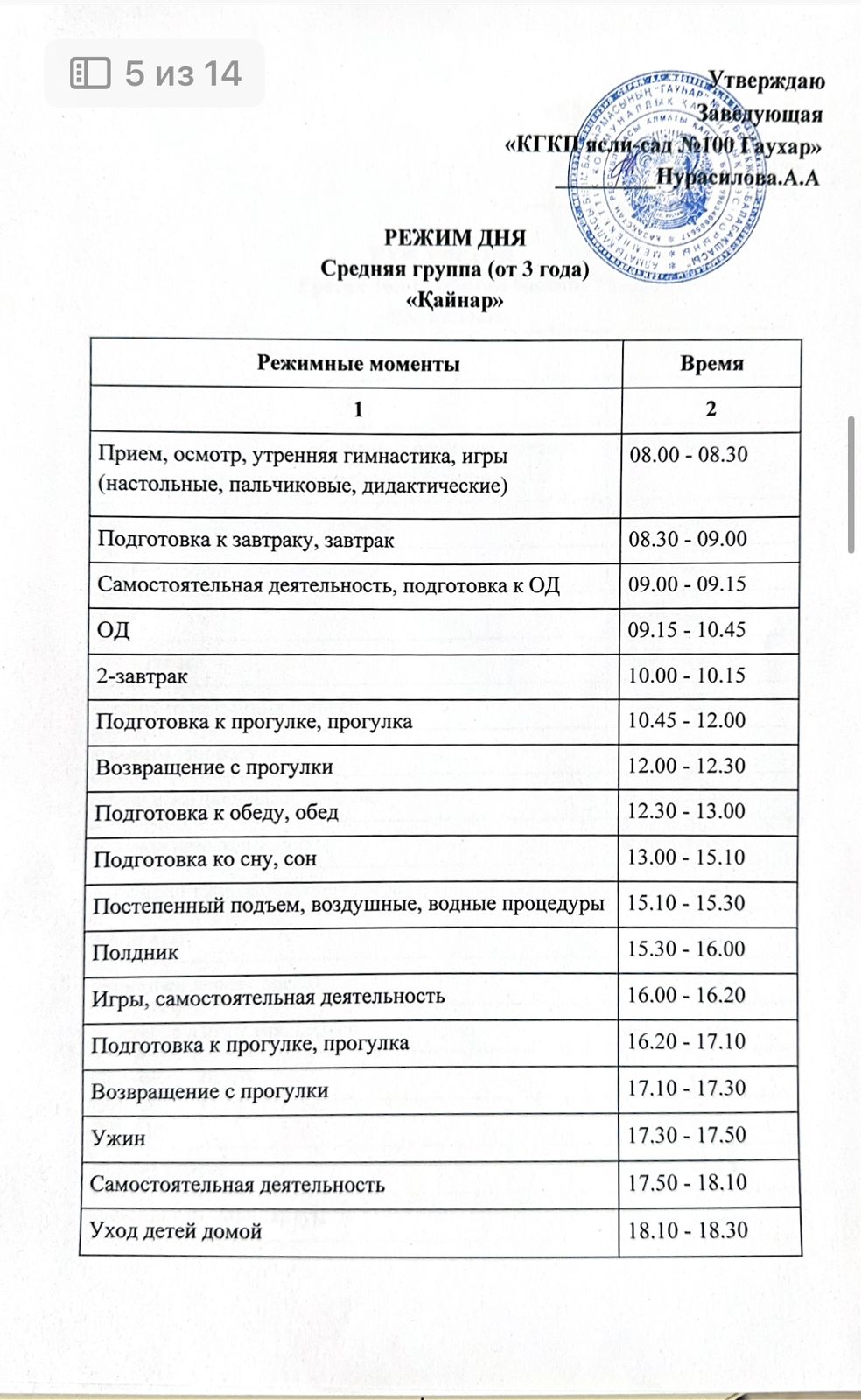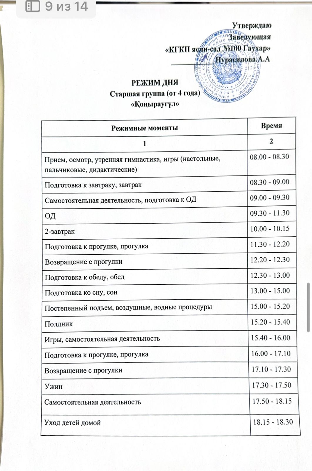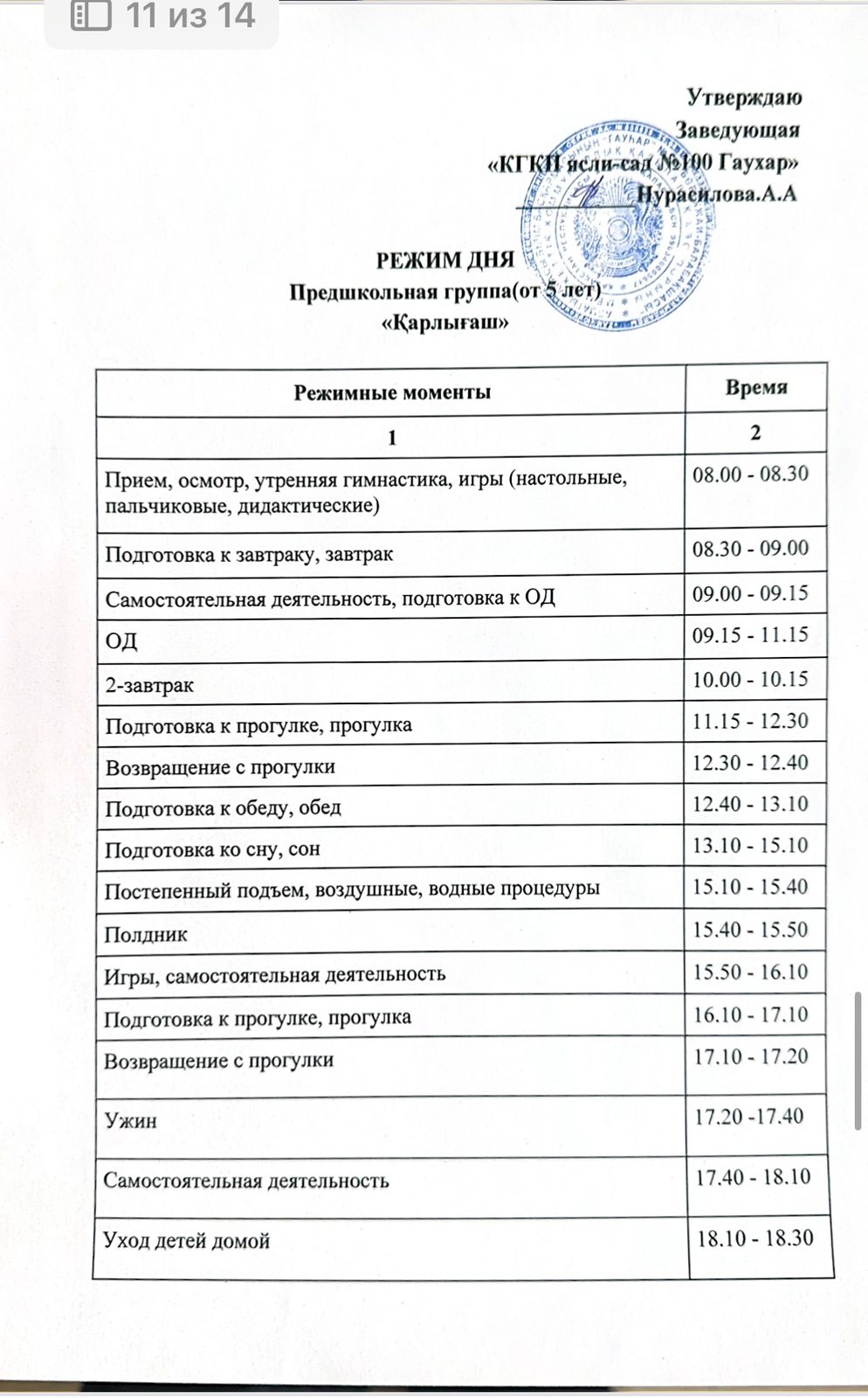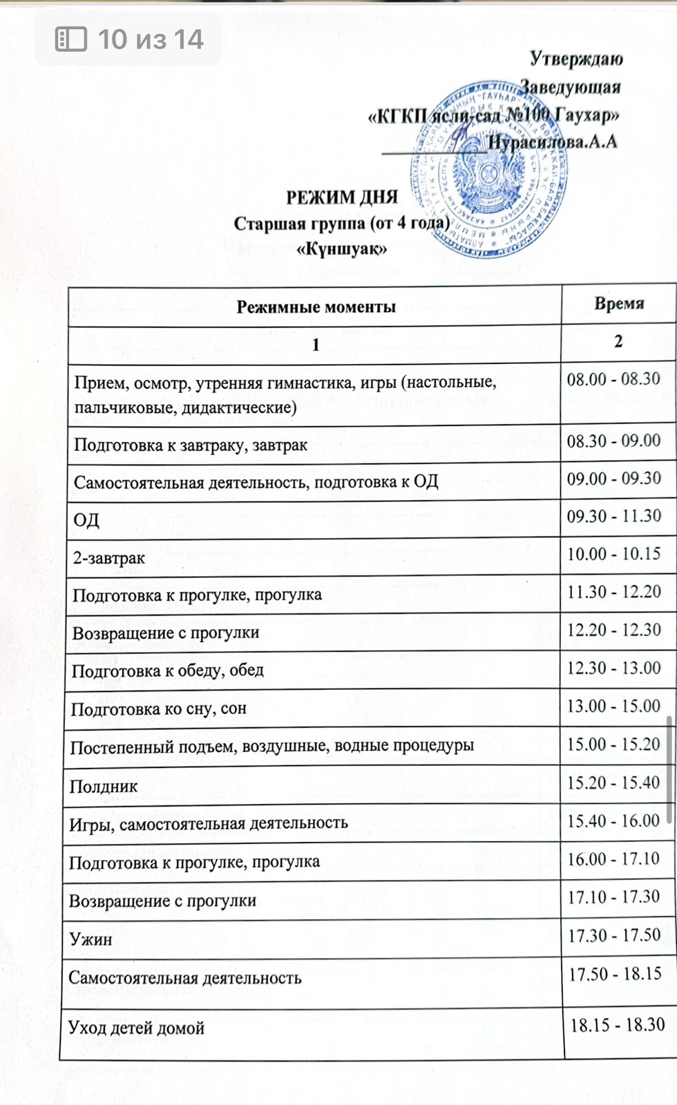 Күн тәртібі. Режим дня.