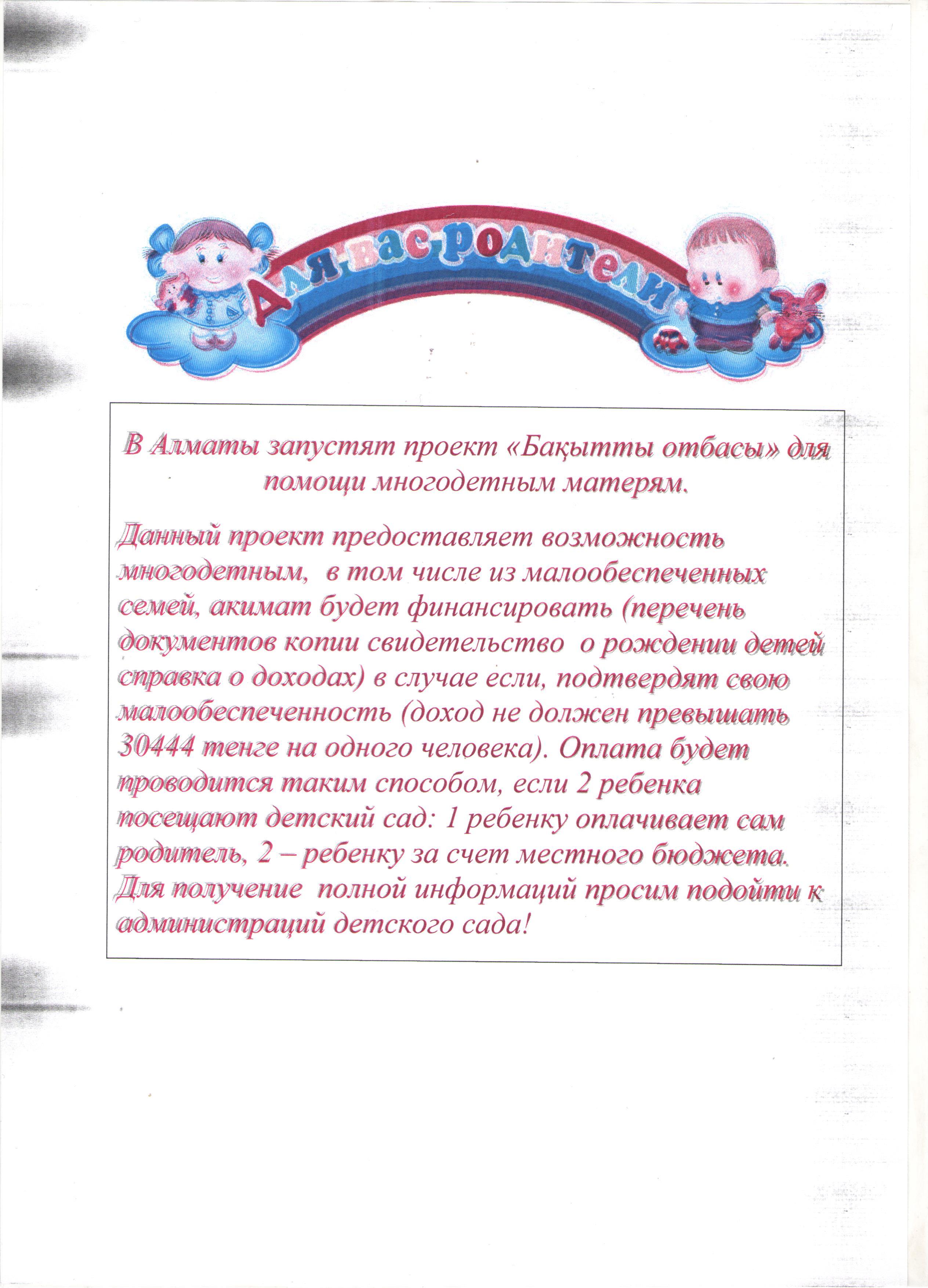 Балабақшаның бағдарламасы жайында мәлімет. Информация о программе детского сада