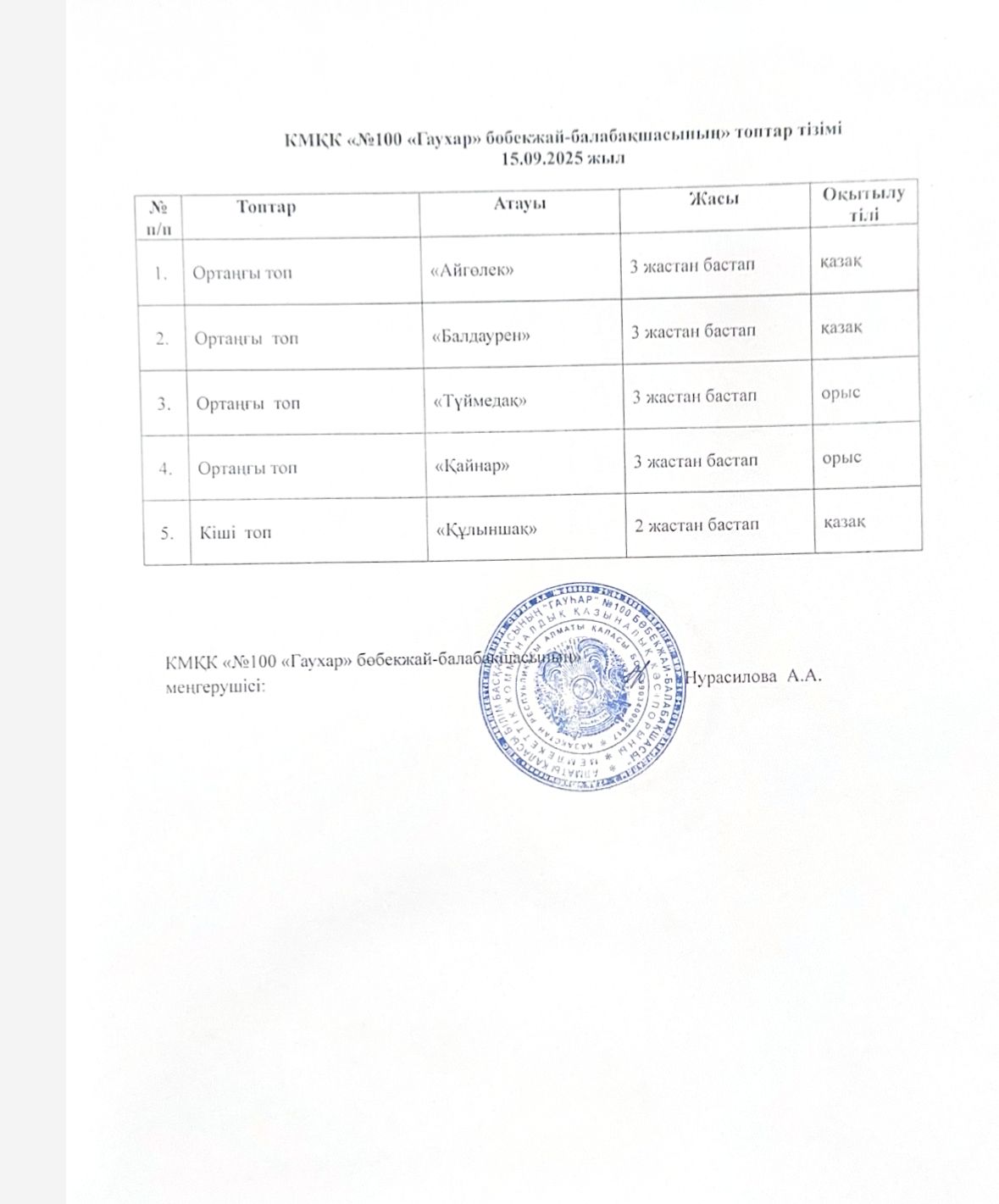 КМҚК №100 "Гауһар" бөбекжай-балабақшасының қамқоршылық кеңесінің құрамы